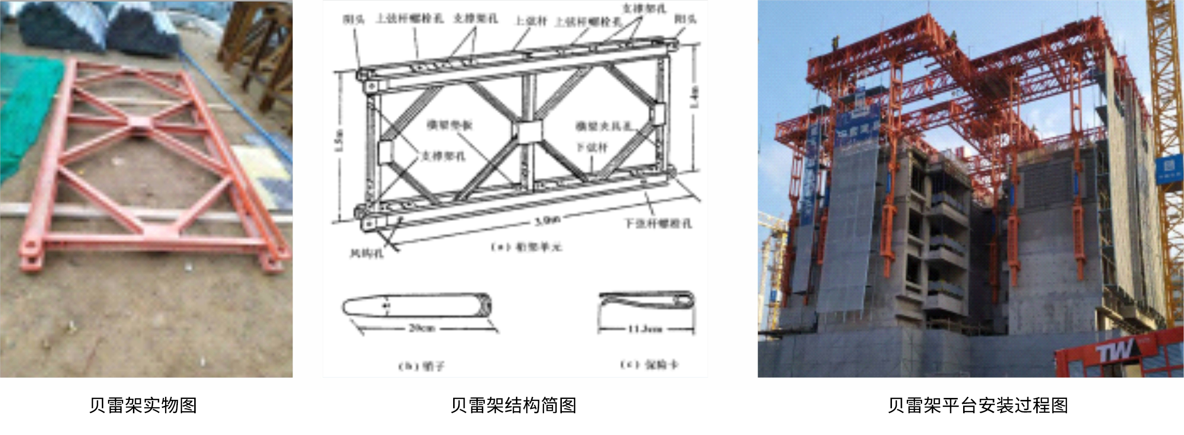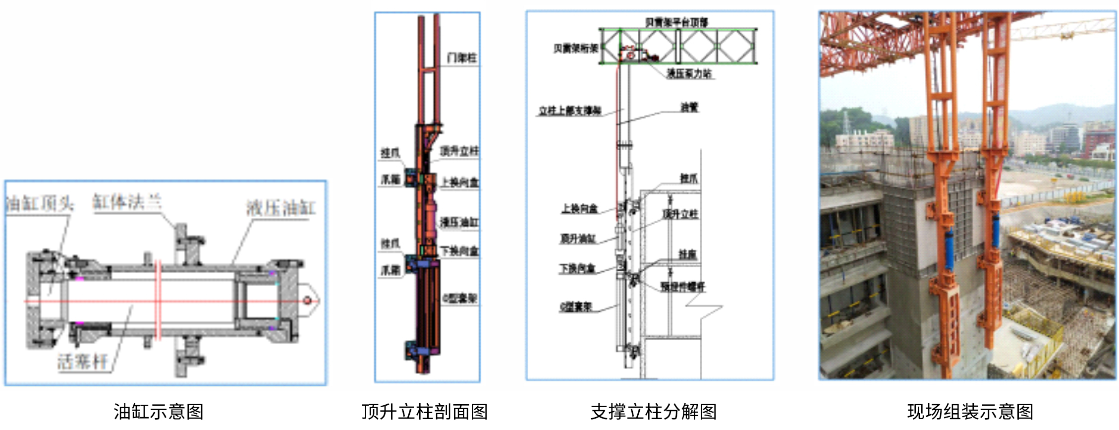 · 鋼平臺(tái)系統(tǒng):321型貝雷架連接組成(長300X高150 CM); · 支撐系統(tǒng):導(dǎo)軌立柱、門架柱及附墻導(dǎo)座; · 動(dòng)力及控制系統(tǒng):小行程、小噸位液壓油缸; · 模板系統(tǒng):鋁合金模板; · 掛架系統(tǒng):輕型吊掛架; · 安全防護(hù)系統(tǒng):平臺(tái)上部防護(hù)、走道板。 |