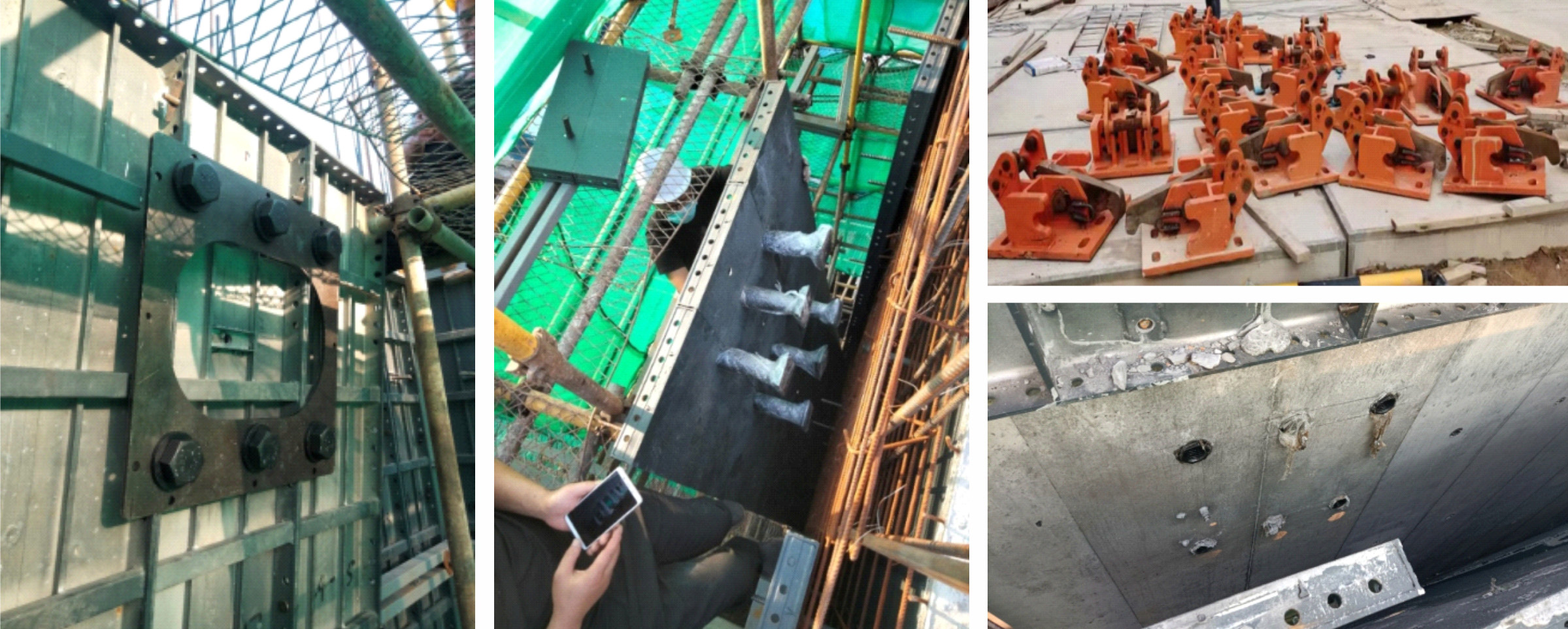 “附著式”造樓機(jī)即住宅智能建造平臺(tái)體系施工是將施工豎向結(jié)構(gòu)的模板懸掛在鋼平臺(tái)以下,采用多支點(diǎn)墻體掛座支撐系統(tǒng),附著在墻體上,頂升其上部的鋼平臺(tái)系統(tǒng)帶動(dòng)模板系統(tǒng)和掛架件系統(tǒng)一同上升,從而完成豎向混凝土結(jié)構(gòu)施工。安全性好、施工速度快、承載量較大、適應(yīng)性強(qiáng)、全天候作業(yè)。我們在成都怡和新城項(xiàng)目上的住宅,采用了這種方案。 |