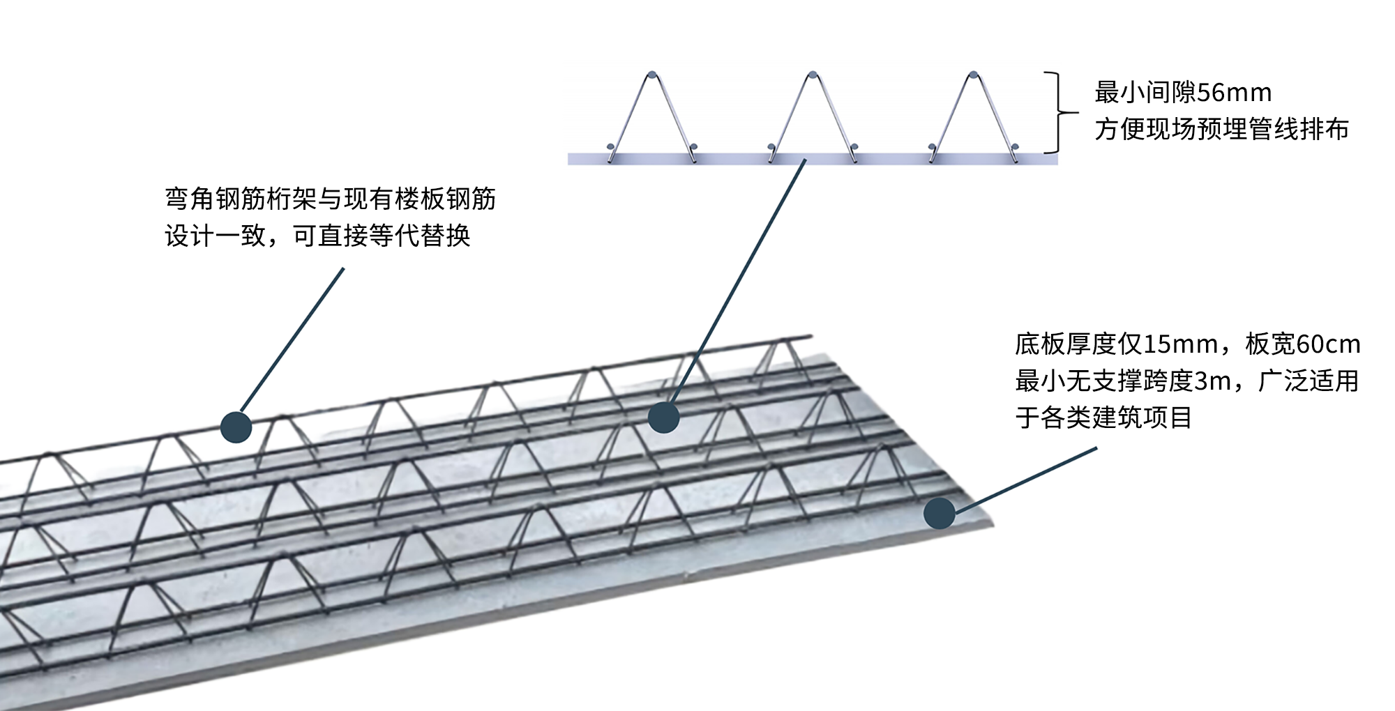 將現(xiàn)場人工作業(yè)轉(zhuǎn)化為工廠設(shè)備制作,減少人為不可 控因素,鋼筋間距及混凝土保護層厚度最大限度符合 設(shè)計要求,樓板質(zhì)量更為可靠。