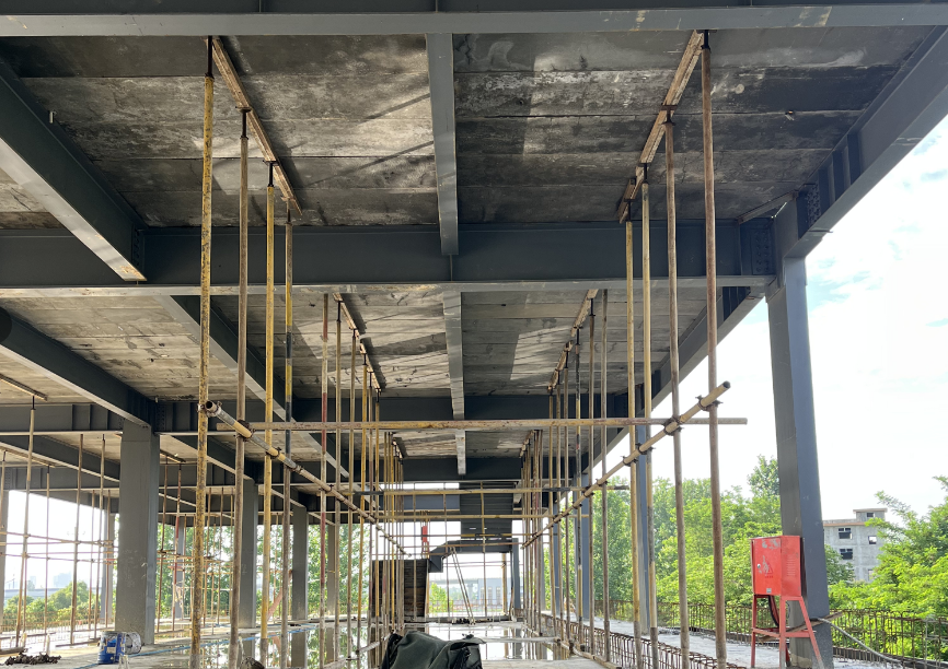 鋁合金底模樓承板現(xiàn)場鋪設(shè)完成